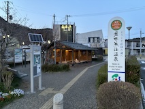 で、宿は萩姫の湯 栄楽館。館内の温泉には2つの源泉から引いており、市営4号泉、5号泉の単純温泉(pH8.4)と自家源泉 栄楽泉 アルカリ性単純温泉(pH9.3)とpH高めの好きなやつ。男女入れ替えの内湯と小さめの露天、そして玄関前に足湯もある。