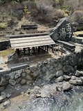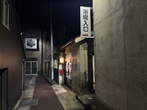 で、ここまできたら元湯にも入りたいと、駅前の共同浴場霊泉元湯へ。趣一杯の路地にあるのもまたいい。タイル張りの大きな内湯が2つ。熱めとぬるめで交互に入る感じ。なにより大きな湯船から大量にあふれていて贅沢な温泉。
