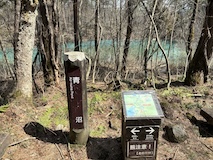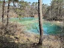 西側から入っていったが最初の柳沼はそれほどでもって感じだったが、進んでいくと、だんだん明るい緑の沼になっていきエメラルドグリーンな青沼、るり沼、そして1.5kmほどのところにある弁天沼まで行くと見事にコターコイズブルー。着色したでしょってレベルで綺麗。ちょっと足元見ると褐色の池も、こちらはタンニンかな?一番大きな毘沙門沼まで行くと観光地っポくなってくる。毘沙門沼は濃いマリンブルー。これだけの距離で様々な色が楽しめるのが良い。遊歩道も歩きやすくて気持ちよかった。