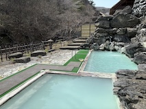 まだ時間があるので、北上し福島市の吾妻山中腹にある旅館玉子湯のお風呂へ。7種類の湯処がある、これまた贅沢な湯量のpH2.7の酸性含硫黄カルシウムアルミニウム硝酸塩泉。源泉は無色からの乳白色、硫化水素臭。いろいろ珍しい。源泉温度が48度ということもあり、加水も加温もなしの完全な掛け流し。ただ、7種類どれも熱い。ので、ちょっと入っては次の繰り返しで、楽しい。