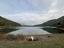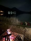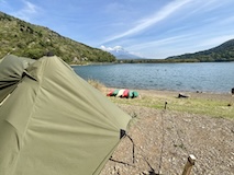 食材を調達して精進湖半にある精進レークホテルが管理7エルレークサイドキャンプ場へ。湖沿いに横並びに区画が切られているのでどこでも邪魔されずに景色を楽しめるのがいい。精進湖越しに富士山の見えるサイト。ソロ専用区画サイトだけどそれなりに広いのでゆったり使える。逆サイドならもっと富士山見えたかな。