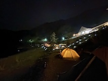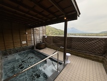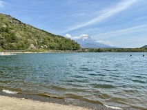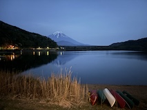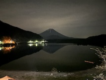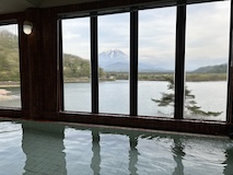 サイトに戻り、精進レークホテルの温泉に。ここからも精進湖越しの富士山が見える。泉質はカルシウム・ナトリウム 硫酸塩温泉。露天と内湯が別々であり、内湯の方が景色がいい。あとは、ひたすら湖と富士山をぼーっと見る。暗くなってもシルエットが見えるのがいい