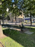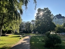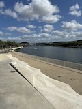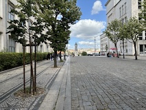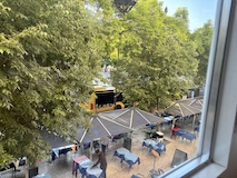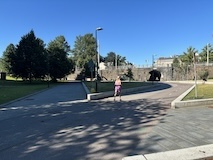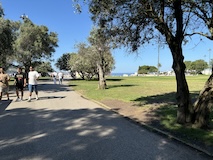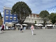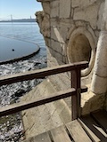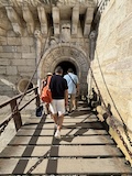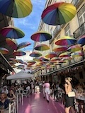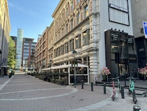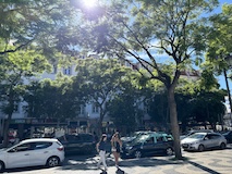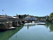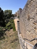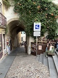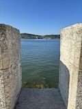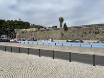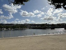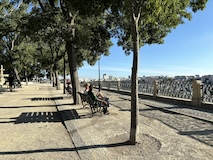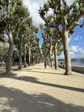 河岸の道なのに水面から少し上に道が作られている。それくらい穏やかな川なんだろうなというのと、河岸の道から見ると建物の1階はアーチのある城壁のような石壁になっていて歴史を感じられ、そこにレストランのテラスがあり雰囲気がいい。