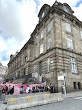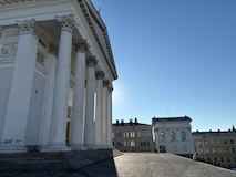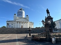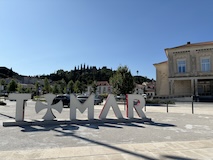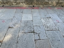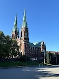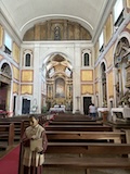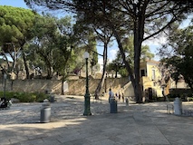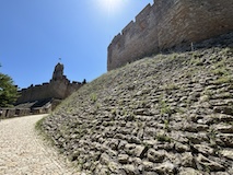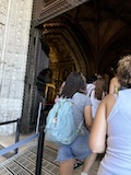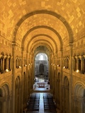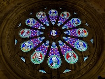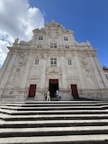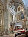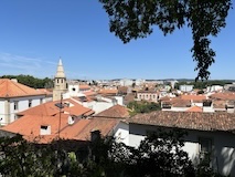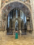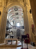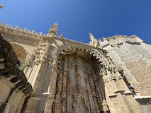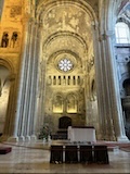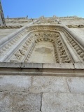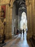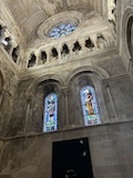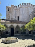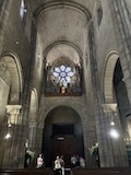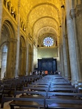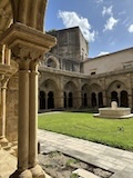 大聖堂の広場に出る。またここも丘の上なので景色がいい。12世紀に建てられてから改装はされているそうだが、ファサードやバラ窓はそのままだそうで、外から見ても威厳がある。そして大聖堂のドアが閉まっていたので入れないのかと思って後にしようとしたら、横の修道院(かな?)側から入るようになっていた。あぶない。