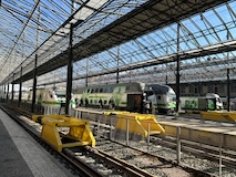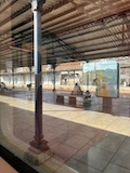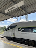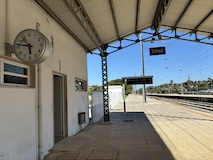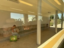 で、発車5分前にアポローニヤ駅に到着。で、滑らないように慎重にでも構内をダッシュし、看板見てる時間ないので、駅員さんっぽい人に電子チケット見せて、どれ乗ればいい?と聞いて、ギリギリ間に合った。