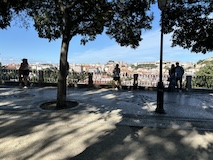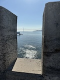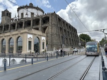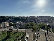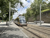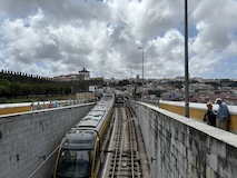 坂を上り切ってルイス橋の上層と同じレベルまでくるとモーロ庭園に出る。芝生に座って対岸のポルトを眺めたりもよし。すぐ後ろで生ビール売ってたけどここは我慢。で、さらに登るとセーラ・ド・ピラル修道院へ出る。残念ながら入れなかったが、こちらの庭からはルイス橋越しにポルトを見られる素晴らしい眺望。けっこうライトレールが来るので景色に変化があって長々見てられる。ライトレールは橋の上ではかなり低速で走る。乗客へのサービスというよりもルイス橋を歩く人が危ないからに見えるが、いいサービス。