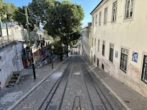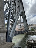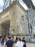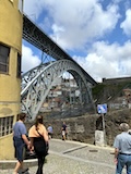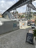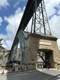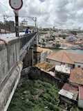 で、いよいよポルトといえばのドン・ルイス1世橋へ。二重構造になっていてまずは下を渡る。ちなみに下は自動車用、上は鉄道用になっていて、両方歩道もついている。この上層の橋と下層の橋の構造をアーチ構造で繋いでいるのが機能性もありデザインとしてもかっこいい。渡りながら見てもかっこいい。この橋も歴史地区の構成遺産。ドンルイス橋を渡るとポルトの対岸のヴィラ・ノヴァ・デ・ガイア市になる。そこからくねくね路地を登る。この路地がカルサーダ・ダ・セーラというらしい。いちいち名前が長い。
