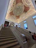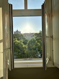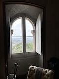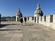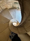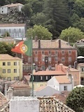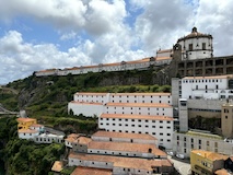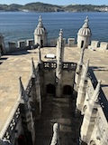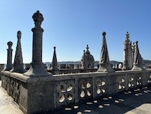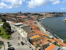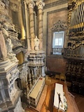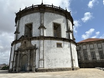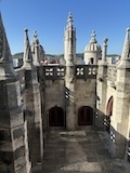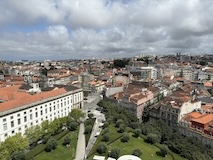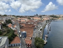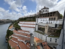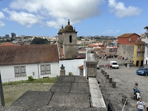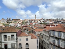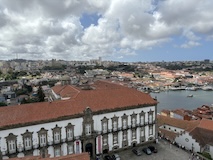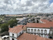 予約の時間が来たので、クレリゴスの塔に登る。普通教会の塔はただ塔に登るだけなのだけど、こちらは、まず教会のバルコニーをぐるっと一周して本堂内を上から見る。そして次に博物館的なエリアがあり、そしてようやく塔に登る。250段ほどの階段で高さ70mのてっぺんに出る。70mなのだけど、坂が多いポルトの高い位置にあるのでかなり遠くまで見渡すことができた。