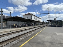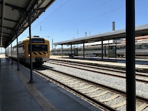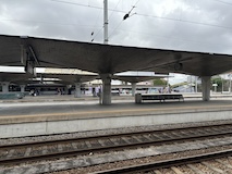 アポローニャ駅まではロシオ広場からのバスで10分ほど、歩いても30分ほど。夜に雨降って石畳は滑りそうなので、歩くのとか電動キックボードは避けて、始発のバスのれば遅れることもなかろうと思いバスを選択。が、時間になっても来ない。なんなら始発の次のバスも来ない。一方でカイスドソレ駅行きはガンガン来るのに、アポロニャー行きは来ない。おー、電車乗り遅れるんじゃねえかやばいのではないかと思い、途中まで行ってくれるバスとかを探し出したりしてたら、やっときた。後で分かったのだがCarris社が今週の平日はストライキで、適当に減便なのだそう。いっそ全便運休にしれくれたらええのに。