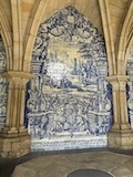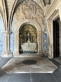 ポルト大聖堂に入るとまず回廊が出てくる。壁には柱や天井のカーブが額縁のようになったアズレージョ。ゴシックの立体的な形にハマっているのがいい。中庭を見下ろすことができる回廊の2階も壁一面アズレージョ。そしてこちらの塔にも登ることができ、ドウロ川に近いのもあり立体的な街並みを見ることができる。