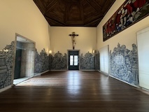 建てられた当時が残る外観はロマネスク、改築された礼拝堂、回廊はゴシック、玄関はバロックといくつかの様式が見られたのもよかった。