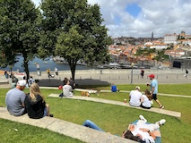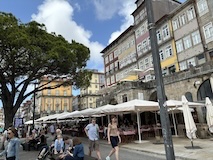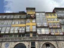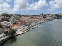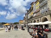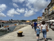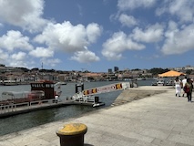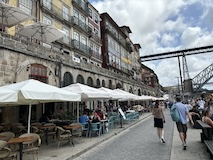 ポルト大聖堂の広場から伸びる階段でドウロ川へ降りる。急斜面にも住宅街が広がっており、道がものすごく入り組んでいる。ポルトガルは道が綺麗なので、そこと比べるとちょっと雑然として怖い印象もあるが、カラフルな家や、玄関までにちょっと階段があるところなど工夫が見られて、見るもの多く目が忙しく、下りていくのが楽しい。まだ着かないのかというくらい下りて、レストランのテラス席に出たと思ったら川沿いのカイス・ダ・リベイラに到着。逆に登るつもりでここに来たら、登り口を見つけるのは無理やろなっておもわれる。