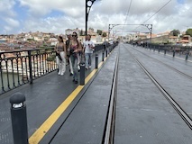 ポートワインの蔵など見てまわりたかったが、景色眺める方がいいのでルイス橋上層を渡ってポルトに戻る。橋から両岸を眺める景色はもう最高。ちなみに、ライトレールは歩道ギリギリ走るし、しかも名所なので歩行者はめっちゃ多い、レールの上は普通に歩けるしと、日本じゃありえない。でもそれのおかげでこの景色が見られている。