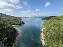 鳴門スカイラインから水道を見下ろす。思っていた以上に流れが早い。特に端から見ると高い位置からになるので景色がいい。