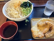 さぬき市のこがね製麺所にてさぬきうどんいただく。天ぷら充実なセルフの形式がいい。