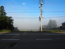 今朝の霧。宿の朝食いただいていると間に合わないのでということで抜きにしてもらっていたが、おかみさんがおにぎり作ってくれていた。しかもめっちゃおおきいかやくごはんのん。ありがたい。