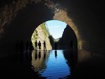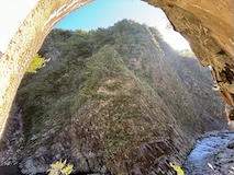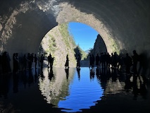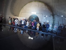 芸術祭でなくても人気スポット、清津峡トンネル。30分前に行ったけどもう行列。こんなに晴れた日に来られたのは初めてで、なるほど映える。
