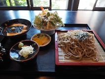 最後にへぎそばを好きになったきっかけの津南町の味処大平へ。へぎそばを頼むと2人前で出てきて食べきれんのはわかっていたのだが、天ざるもへぎそばとのことだったのでそちらいただく。うまい。