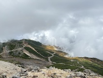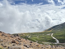 帰りは畳平ではなくて大雪渓を右に見ながら肩の小屋口へ降りる。バスが来るまで時間があるので、ちょいちょいの紅葉見ながら少し車道を歩いて下り途中のバス停から乗り、休暇村まで戻る。とりあえず、高山病になることもなく無事下山できた。ずっと登ってみたかった一つなので登れてよかった。