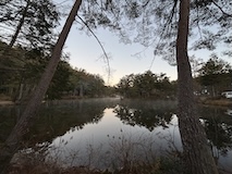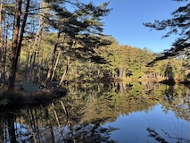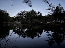 朝起きると池にモヤが出ていて幻想的、陽が出てくると今度は鏡面になって綺麗やった。でギリギリまで過ごし後にする。