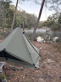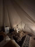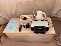 電気毛布のベッドにこたつにとぬくぬく環境に、すでにカット済みの食材に、バーベキューコンロと至れり尽くせり。一応念の為とメスティンとか調理器具持ってきたけど、全部あった。なにより、テント立てなくて済むのがいい。で、この背の高いティピーテントがいい。欲しくなった。