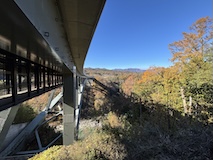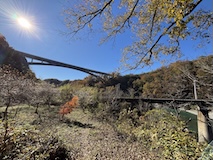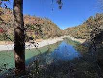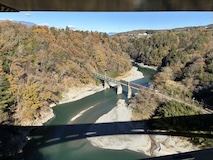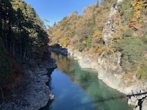 せっかく紅葉時期なので天龍峡をぐるっと回る。天龍川左岸の吊り橋へ降りる道が通行止めだったがために、そらさんぽ天竜峡大橋から天竜峡駅まで回るかなり長距離になったが、名勝の紅葉が見られて良かった。