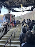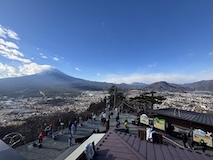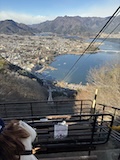 河口湖 富士山パノラマロープウェイへ。いつも大行列で乗れなかったので開店前に。少し並んで乗れた。