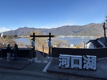 河口湖、西湖と道が凍るギリギリくらいの道を抜けて、紅葉台へ。はじめてきた。