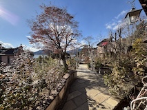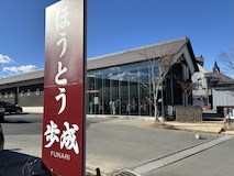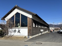 せっかくなのでほうとういただこうと、歩成さんへ。河口湖のこちらの店舗は初めてだが、蔵になっていてテーブルがスロープに並んでおり、一番奥になったのだが、でーんと鎧兜越しに富士山が見えるというなんとも山梨な感じ。