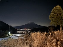 夕食には、分厚いハンバーガーにカレー鍋。めっちゃお腹いっぱい。で、こたつに入りながら宮城のお土産でもらった一ノ蔵幸せの黄色いすず音をいただきながら夜の富士山(の輪郭)みてすごす。寒いけど開けっぱなしで楽しみたくなるいいロケーション