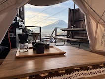チェックアウトギリギリまで富士山楽しむ。グランピングやけども大人数用でもないし、数も少ないのでけっこう静かに過ごせるいいところやった。