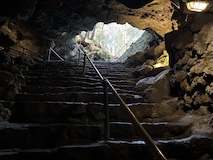 氷穴には行ったけど、こちらは初めての富岳風穴。蚕の卵の貯蔵に使われていた長い横穴の洞窟。縄状の溶岩など石好きにもたのしめる。