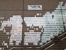 メタウォーター下水道科学館あいちへ。展示施設はガラス張りの明るい建物、お子様向けのイベントも多くやられているようで科学館的な雰囲気。そしてなにより、愛知県各市町村のカラーマンホールの蓋をあちこちに、また日本地図に日本中のマンホールカードを展示してあるのがこちら側には刺さる展示やった。すばらしい。