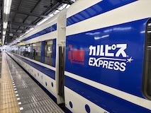 東武線の特急「りょうもう『カルピス』EXPRESS」。ネーミングライツなのかラッピングなのかとおもっていたが、群馬にあるアサヒ飲料さんとのコラボだそう。外観は完璧にいいのだが、中はふつうというかレトロでちょっと半端やな