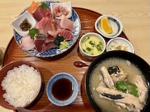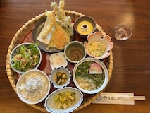 お食事処やまにさんへ。福田漁港で上がったしらすなどを使った和食やさんで、籠のランチが華やかでおいしかった。
