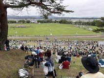 また、踊りから始まり競馬が始まる。競馬は待機所にいる騎馬たちから、行きたい人がスタート地点に進み、全員の息を合わせてスタートするという独特なルール。当然ながらなかなか気が合わなくてスタートやり直しが連発する。甲冑に旗をたなびかせてビュンビュン音を立てながら走り抜けるのはこれまた迫力がある。そして馬の中にはかつて中央競馬で走っていた競走馬もいるようで、ちょいちょいめっちゃ早い馬もいた。そしてメインイベントでもある神旗争奪戦。花火で打ち上げられた神旗が落ちてくるのを、約400騎の騎馬武者たちが馬に乗ったまま奪い合うという迫力あるイベント。400騎が一斉に動くのも迫力ある。が、正直競馬の方が近いからか迫力あったが、旗を取ると英雄なんだろうなという雰囲気は感じられ、良い神事だと感じられた。1000年続く伝統ある祭りなのだが、夏開催だったのが5月になったり、女性や子供の参加も多くなっているなど、時代にあわせて変更してきているのが、永く続けられるには必要なんやなと感じ、会場を後にする。
