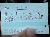 いよいよ帰るのだが、原ノ町から東京までは臨時特急、相馬野馬追号。といっても普通にひたちだかの特急の車両なのでそこまで特急感はない。ただ、常磐線最速で停車駅が少ないのだそう。