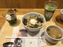 遠鉄百貨店にあるナナズグリーンティーの鶏そぼろどんぶりにスイーツセット。