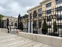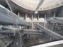 中庭の回廊に出る。柱が細めをたくさんなのだが、上はなるべく軽くということらしい。