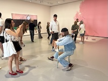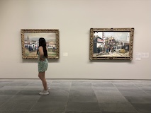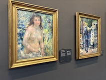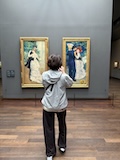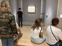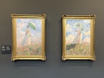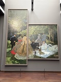 じっくり見たいのは決まっているので、みなさんが1階から見られている中、じっくりみたいので一気に最上階の印象派のエリアへ。と、途中で時計のところをみつけてしまったので、つい写真をお願いして撮ってもらった。さすがオルセー、どの1枚だけでも日本なら特別展開けるクラスの名画がずらり。連作が揃っているのもすごい。これでも、貸し出していたり、バックヤードにおいてあったりもするんやろな。と、一番見たい「かかさぎ」が出てこないなと、学芸員さんに聞いたら、1階ですよ、と言われ、一旦降りる。