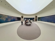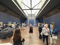 休むことなく、いそいでオランジュリー美術館へ。この日は夜観覧可能ということで、最終入場の19:30のチケットを買っていたのだけど、ギリギリ間に合いそうで早足で目指す。当初は早朝に到着予定だったのでかなり余裕を持っていけるはずやったのに、スト予告出てフライト変えて到着が夕方になりチケットは無駄になったと諦めていたけど、配車お願いしたのと徒歩圏内のホテルにしたのが良かった。ルーブルを横目に、チュールリ庭園も突っ切る形で、ギリ間に合った。オランジュリー美術館といえば睡蓮やけど、それ以外にも、ユトリロやピカソ、マリーローランサンなど印象派・ポスト印象派のパリにゆかりのある画家がコンパクトにぎゅっと集約されている。さらに「Out of focus, another vision of art from 1945 to the present day」というピンボケに焦点を当てた特別展で、近代、現代の絵画を楽しめる。さすがパリでこれだけで十分すごいのだが、やはりここは睡蓮。楕円形の部屋が2つに8つの大型作品で圧巻される。オランジュリーは、ほぼ睡蓮だけなんやろうと思っていたがポスト印象派に現代アートも見られていきなり満足。夜間といっても、日の入りは21:45ということで、まだまだ明るい19:30なので、この自然光でたのしめるオランジュリー美術館を十分見られた。