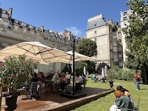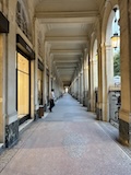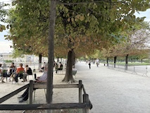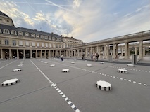 ルーブルの少し北側のアパート街に突然現れるパレ・ロワイヤル(王宮)へ。宰相リシュリューの城、ルイ14世の宮殿、その後革命家の溜まり場になったり、劇場や賭博場といった娯楽の中心地、で今では文化省などの省庁にカフェ、商店が並ぶといった、とにかく目まぐるしい変化ながらも常に人が集まるところとして残ってきたところ。とにかく手入れが行き届いていてベンチに座っていて気持ちいい。