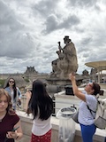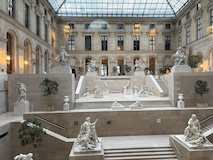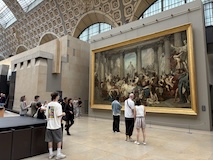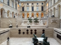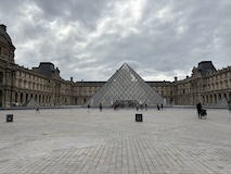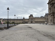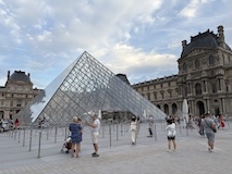 まだ明るいので、コンコルド広場でルクソール神殿にあったはずのオベリスクや、前回来た時は増水で歩けなかったセーヌ川沿いを歩き、あらためてチュイルリー庭園で、パリオリンピックの時の聖火台の気球みたり、ルーブルのピラミッドに、ルーブルの彫刻館をちょこっとだけ中を見られる窓からみるなど。このあたり世界遺産。