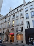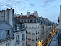 空港からオペラとルーブルの間にあるホテルまで、渋滞などもあって80分ほど。アジア料理屋さんが並ぶ中にあるBaudelaire Opera Hotel。小さいところやけど、スタッフさんが優しく、丁寧で安心。部屋は5階のバルコニー付きの部屋。パリっポイ住宅の屋根を見渡せるいいお部屋。