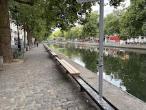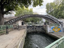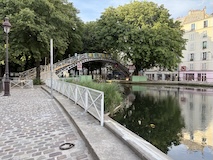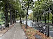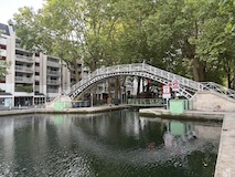 サンマルタン運河へ。太鼓橋に街路樹がいい雰囲気。散歩やジョギングしている人も多い。