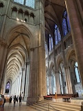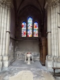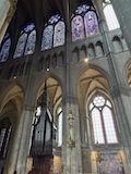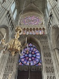 で、さっそく今日の目的、世界遺産ノートルダム大聖堂ランスへ。シャルトル、アミアンと並ぶゴシック様式の傑作。特にこちらは左右対称で、そして圧倒的に高く見える教科書通りの素晴らしさ。33人のフランス国王が戴冠式を行ってきた歴史もある。文句なしの世界遺産。外見もさることながらステンドグラスもすごい。まず入口上の2段のバラ窓でかいし明るい。聖堂内上の方の窓までステンドグラスが入っている。でも一部はガラスのため明るさもある。主祭壇裏の礼拝堂には、シャガールに現代アートのステンドグラスと新しいものも取り入れられていて、今も生きている感じがする。まあ、とにかくまさに荘厳で感動した。