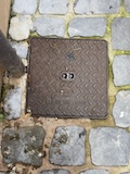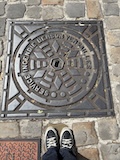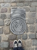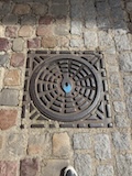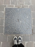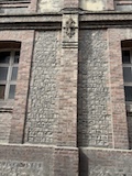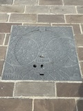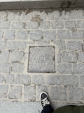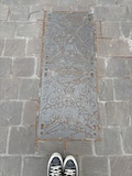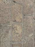 で、ここからみると下から見ていたのとは全然違って教会部分は小さいのがわかる。。ここの石畳にはいろいろ印があって、だれが持ってきたか、作業したかがわかるようになっている。