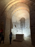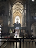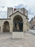 サンニケーズから行ってしまったので裏から。サンレミ聖堂の裏にはサン・ジュリアン教会跡と銅像があり、みんなが再建されているのではないと感じられる。で、サンレミ聖堂。個人的には結構好きな少し薄暗く静かな教会。身廊の等間隔の綺麗に並んだ柱の陰影がとにかくよくって、ただただ座っていて気持ちがいい。なお、今は博物館になっている修道院とともに世界遺産になっている。