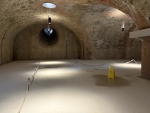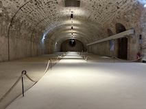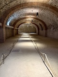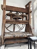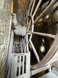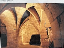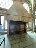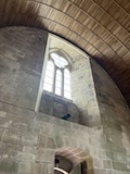 下の階へ。修道院らしく広い台所や食堂、暖炉や煙突が広がるが、こちらは上の階をささえるためにゴツ目の柱や壁が多い。また、ここまで荷をあげるあtめの滑車なども残ってた。