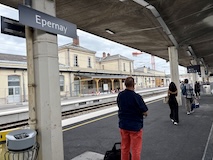 エペルネー駅に戻りながら街並みとか教会とか立ち寄る。ちょっとしたアパートもシャンパーニュと書いてあるだけでなんかオシャレ。レストランにシャンパンの看板もなんちゃってではないのがわかってるので高級に見える。大きなビルがあるわけでもなく、街として小さめではあるものの、シャンパンという世界的に知れた圧倒的な看板で見どころある街やった。